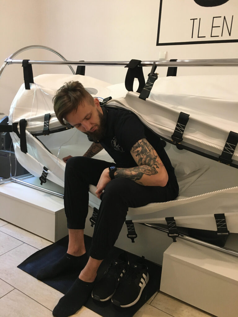 Kilka lat temu zacząłem interesować się tematyką przekraczania granic organizmu oraz wydolnością, poprawnym oddychaniem oraz medytacją. Swoją przygodę zacząłem od czytania książek takich jak „Co nas nie zabije” Scott Carney, „Tlenowa przewaga” Patrick McKeown, „Oddech” James Nestor oraz „Wytrzymałość” Alex Hutchinson. Co doprowadziło mnie do testowania i sprawdzania na sobie różnych technik oddechowych. Kolejną rzeczą była ekspozycja organizmu na zimno, czyli morsowanie, lodowate prysznice oraz bieganie w zimę w krótkim rękawku. Poskutkowało to znacznym polepszeniem odporności, dzięki której nie choruje tyle co kiedyś. Zgłębiając techniki poprawnego oddychania, dowiedziałem się jak wiele korzyści niesie ze sobą tlenoterapia hiperbaryczna. Zanim zdecydowałem się otworzyć swój gabinet, korzystałem z tlenoterapii jako klient. Już po kilu zabiegach zauważyłem u siebie znaczną poprawę w wydolności organizmu podczas treningów bokserskich, redukcję stresu oraz poprawę naturalnej odporności organizmu.